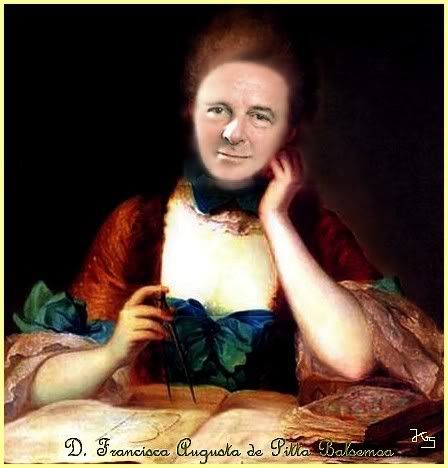 Ao acaso e sem qualquer ordem de importância - são todas damas de igual mérito e gabarito - aqui ficam as duas primeiras. D. MARCELA RABELLO ALCOBIA DE CASTRO E SOUSA D. FRANCISCA AUGUSTA CASCAES DE PITTA BALSEMOA
