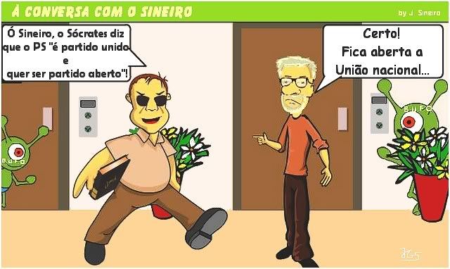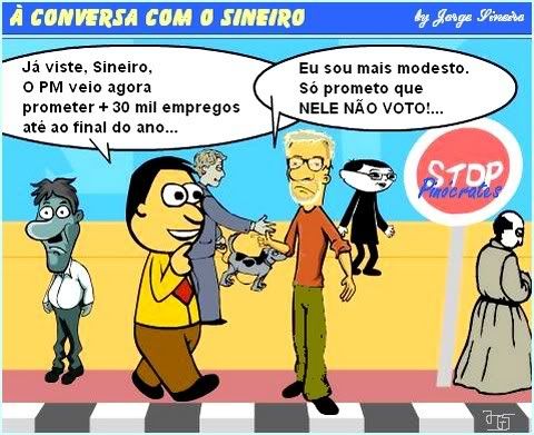 Mas o que mais irritará os portugueses que usam a cabeça para pensar são os serventuários do poder, figuras pequenas, rasteiras e de espinha quebrada, que se desvelam na defesa da honra do chefe. Tem-se distinguido nesse particular um tal Augusto Santos Silva, feito Ministro dos Assuntos Parlamentares, que depois de andar semanas a atacar professores para defesa da sua dama da Educação, veio agora, rapidinho, colérico e histérico, vociferar contra o cartaz da JSD que chama mentiroso ao PM na questão da criação dos 150 mil empregos e o apoda de Pinócrates (coisa que eu mesmo, por exemplo, faço há muito). Mas não se ficou por aí, disparou raiva e veneno para todos os lados, dizendo que adorava "malhar" em tudo o que há à direita do PS, incluindo nesse grupo o PCP da "esquerda plebeia" e o BE, da "esquerda chic", dos mais reaccionários que alguma vez viu, segundo palavras suas e públicas. Já na Madeira Alberto João Jardim assim actua há muito tempo. Nem sequer é original o Augusto Ministro! E se a função de um Ministro dos Assuntos Parlamentares é esta, defender a honra do Chefe, então mudem-lhe o nome e chamem-lhe por exemplo Ministro dos Assuntos do Sr. Primeiro-Ministro.