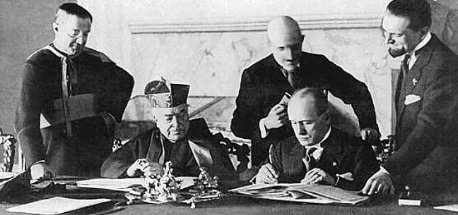 A assinatura deste Tratado de Latrão, em 11 de Fevereiro de 1929, com a presença de representantes do papa e o próprio Mussolini, legitimou o ditador fascista aos olhos do mundo católico, vindo a formar uma bizarra aliança entre um regime que exaltava a guerra e a violência com uma religião que pregava a paz e a tolerância. E do Duce, apesar de nunca se terem dado bem, disse o papa dez anos depois, apesar de tudo o que fez o ditador: " Il più grande uomo da me conosciuto, e senz’altro tra i più profondamente buoni" (Foi o maior homem que conheci, e sem dúvida um entre os mais profundamente bons).